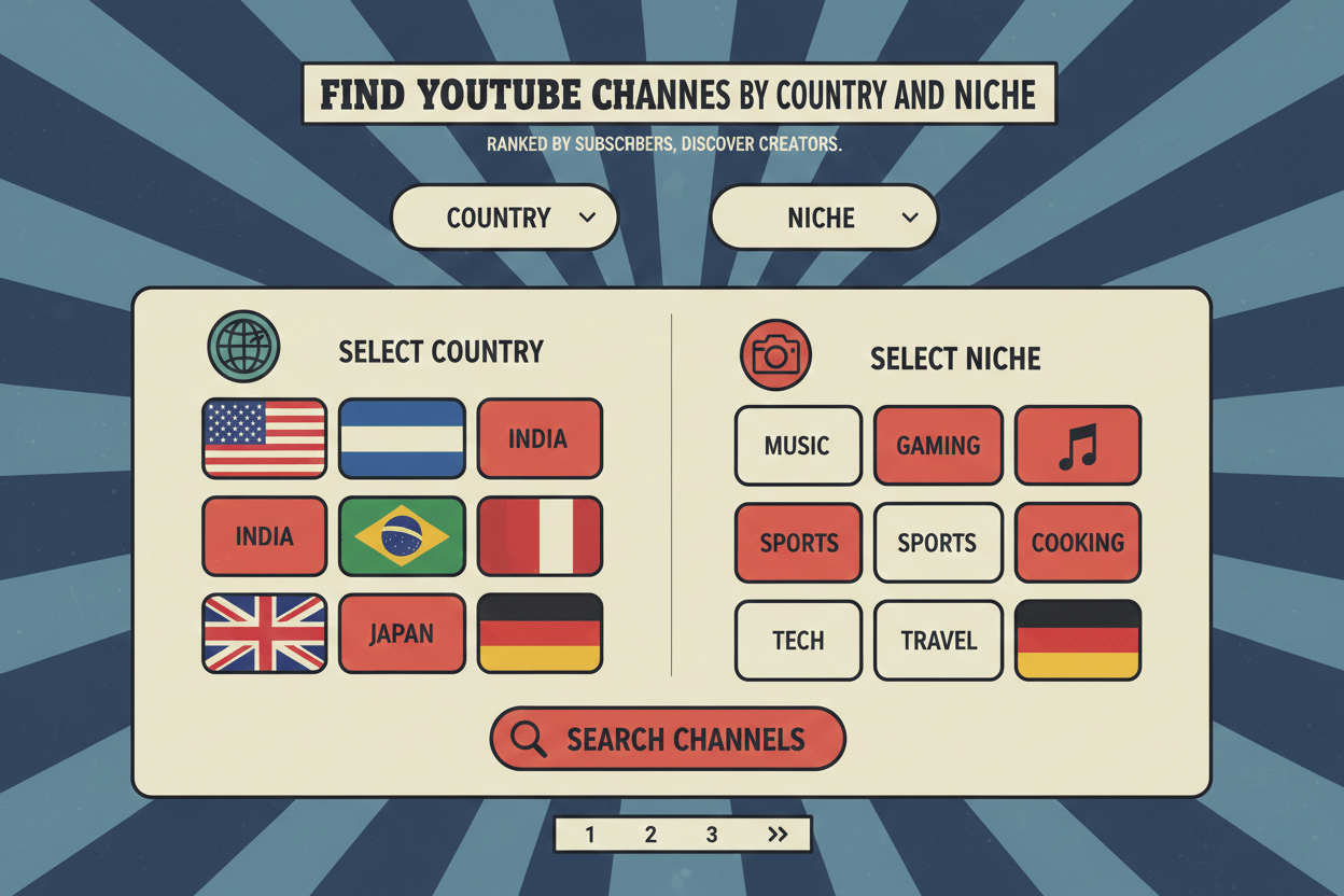 Browse the top 100 YouTube channels by country and niche. Ranked by subscribers; filter and discover creators.